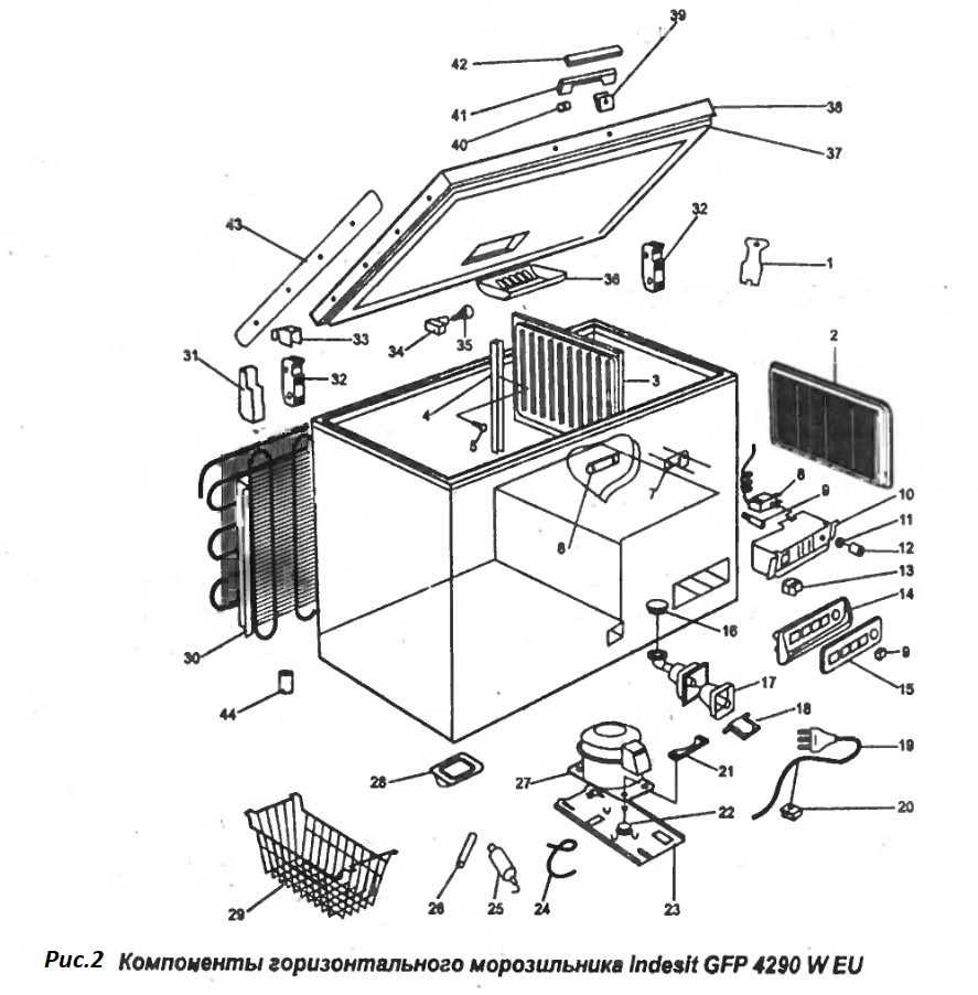 Таблица 1. Перечень компонентов морозильника Indesit GFP 4290 W EU