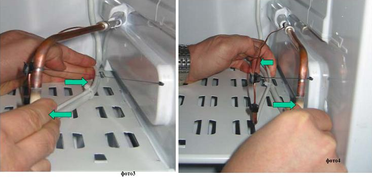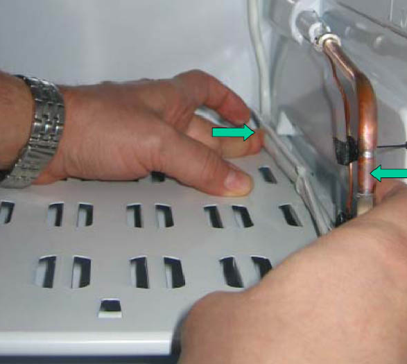 Затем отогните переднюю часть трубопровода, пальцем удерживая трубопровод в глубине испарителя (Рис. 2)